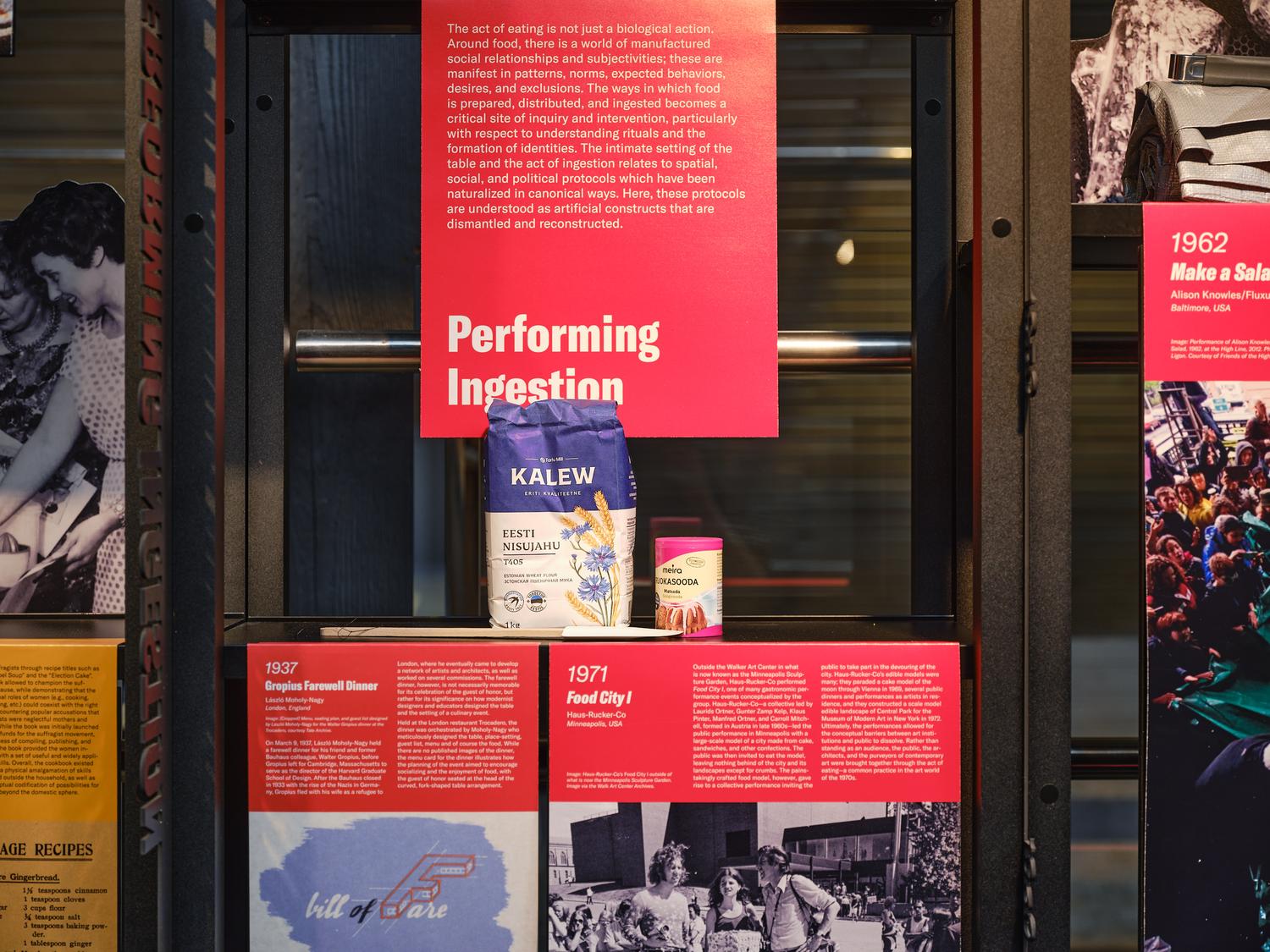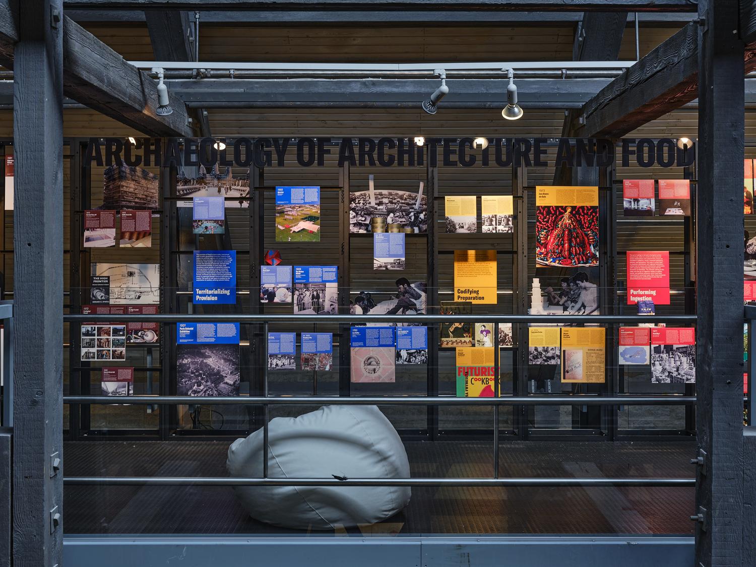 The Archaeology of Architecture and Food, which I led the design and research for, explored edible architectures through the 20th and 21st centuries. Writing a minor history of architecture through the lens of metabolism requires a categorization that responds to two conceptual forces, seemingly irreconcilable when thinking of built form. On the one hand, the architecture included in this archaeology was growing, consuming, producing energy, or rotting, thus placing it in a timeline of metabolic relationships on a material level. On the other hand, the selected spatial projects were entangled with complex social, environmental, and political forces that inform their materiality over time. In a series of categories for conceptual and digestive processes–Cultivating Consumption, Performing Ingestion, Territorializing Provision, Codifying Preparation, Systematizing Digestion, and Regulating Decomposition–we encouraged viewers to read these projects in constellations of material and political interrelationships. While the organization of the installation acknowledges the chronological order, the various categories allow for new, non-linear readings to emerge, prompting dialogue and cross-fertilization between otherwise disparate projects.